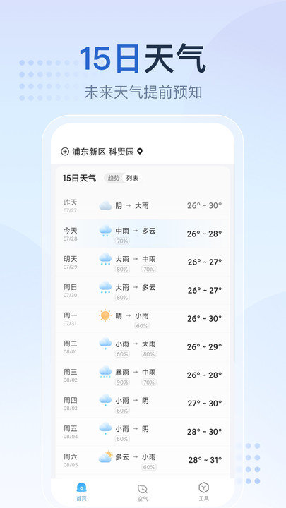 ·未来天气:可以查看未来几天的天气趋势,帮助用户做好计划
