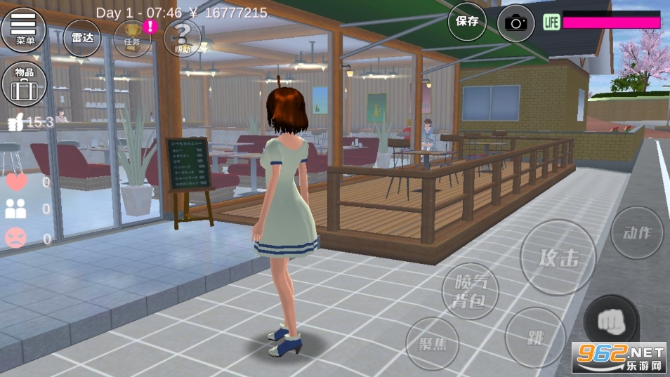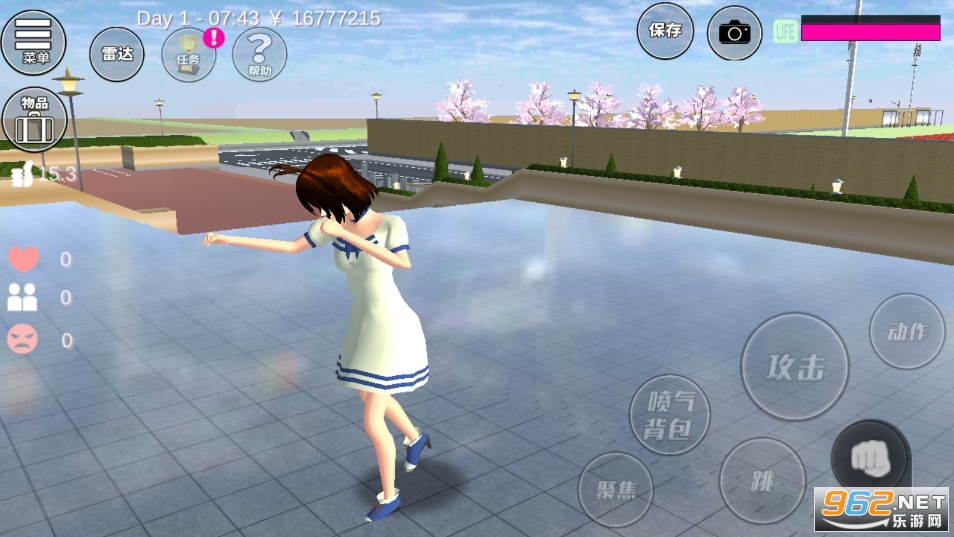 1、游戏以3D二次元的画面打造,所有的场景都非常真实,玩家将控制一个女高中生开始游戏;