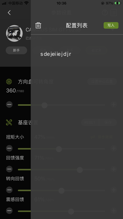 激活绑定设备后,可以通过蓝牙搜索和连接设备,连接后可以调试赛车模拟器的各种参数。
