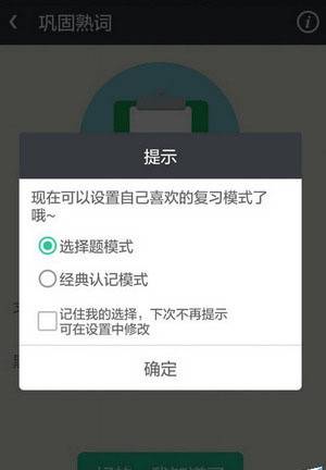 5、在背了一些词汇之后,主页面可以选择巩固熟词。有选择题和经典记忆模式可以选择。