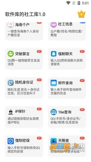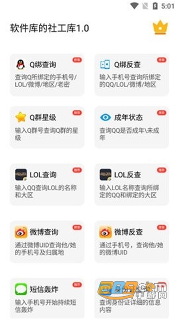社工库App是一款致力于满足你的玩机需求,给你更加全面的实用体验!集合了各种黑科技功能,防沉迷,装逼,恶搞等各式各样的实用工具!涵盖了精彩的特色软件服务,涵盖了更多特色用法,非常实用,打造专业实用的社工库工具。