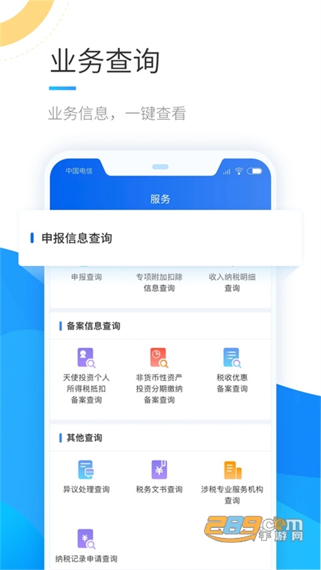 5、【办税查询】个人所得税手机app提供办税信息查询功能,可以查询本人的信息采集、申报、缴税、退税等业务办理情况。