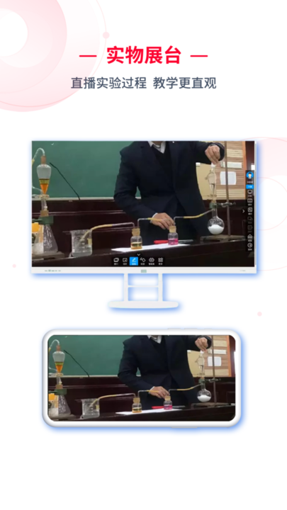 【实物展台】:实验探究过程,移动展示,直播操作;
