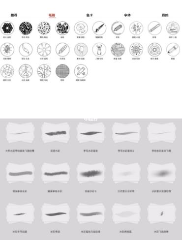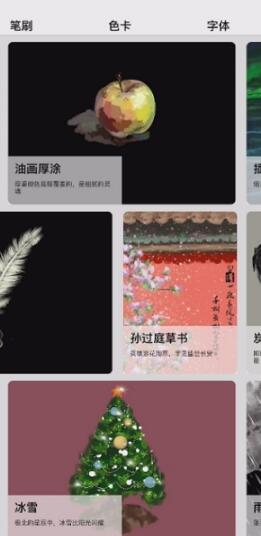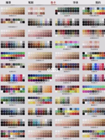 4、准备了许多不同类型的画笔、色卡、字体等,除了更新总资源。