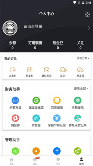 1、直接下载安装易金在线app至手机,点击登录后立即使用