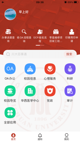 5、为全体师生提供借阅、缴费、班级圈子、学习通知等一站式服务。