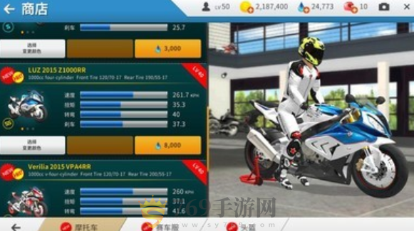 在手游中,在手游里游戏者可以更换摩托车配件,以提高摩托车性能。