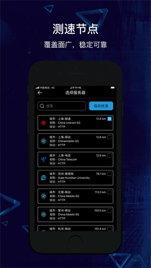 实时测速手机或固定宽带的网速,支持下载、上传、延迟、抖动等专业指标测量,轻轻一按30秒内就可以完成网络速度测试,同时支持多种测速协议,全国超过500+个测速节点。