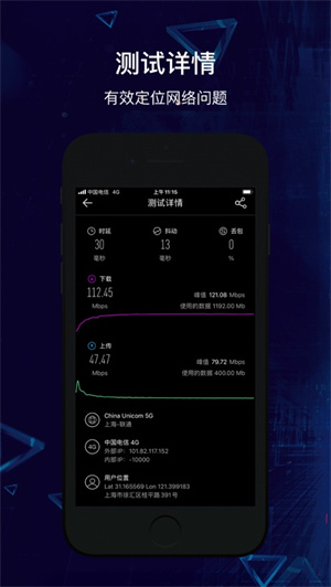 所有结果都会保存在您的历史记录中,并在地图上保存所有测试位置,可以轻松在社交网络上共享您的结果,共享图片,展示您测试的成果。