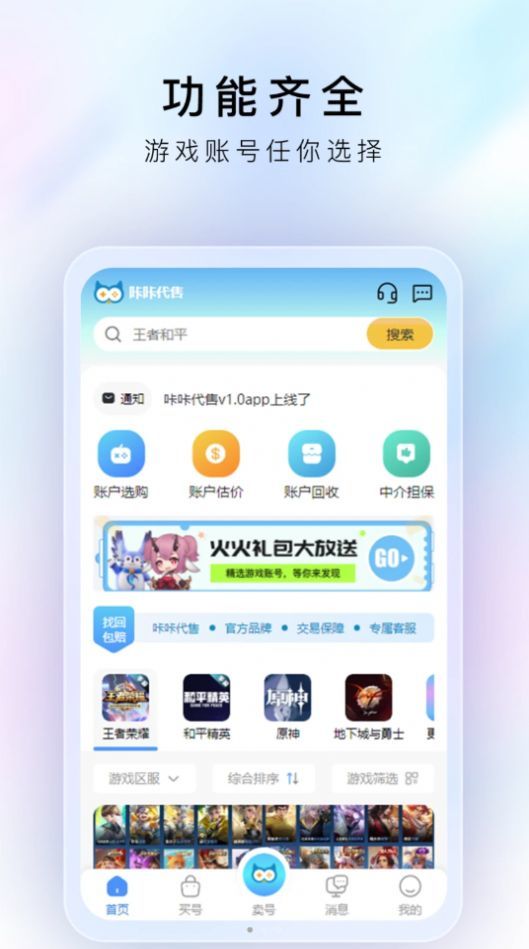 咔咔代售是一款十分安全靠谱的手游盒子,超