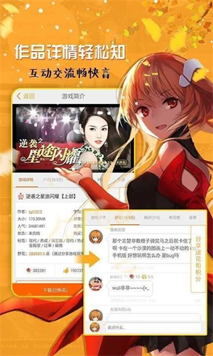 除了查阅观看其他人的作品外,用户也可参加制作组,创作自己的作品,手机app端可简洁明了的学习各种使用攻略,但创作工具需要在pc端使用