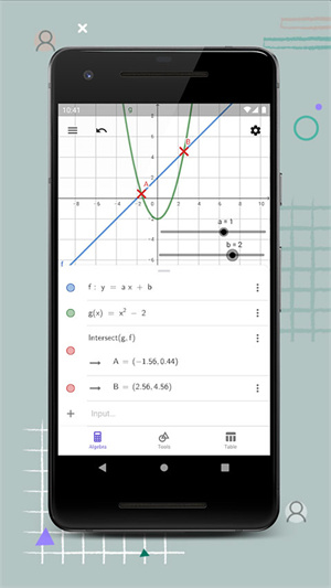 GeoGebra计算器手游包含了所有的数学符号,支持用户输入各种数学公式,并且还为大家提供了高精准的的横纵坐标轴,用户可以自由标点、连线和缩放,数形结合,此外APP还为用户提供了动态图形内容,让大家可以更好地理解数学概念,感兴趣的话快来haolingcc下载体验吧!