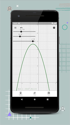 GeoGebra计算器手游是一款十分强大的数学图像计算器软件,它可以帮助用户解决各种数学难题,包括多边形、圆、曲线、函数、几何体等多种问题,同时APP界面整洁美观,操作起来也是十分便捷,用户只需要将需要解决的函数输入,或是手动标点绘制图形,即可获得解题思路,有需要的朋友千万不要错过!