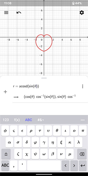 代码一(笛卡尔心形线):r=1-sin(θ) 或 (1-sin(θ);θ)
