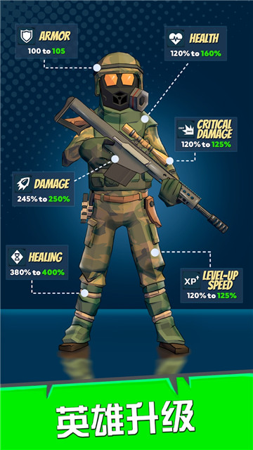 1、激情射击:最后的英雄游戏是以射击为核心玩法,每个人都能体验到爽快的射击动作和动感的战斗过程。