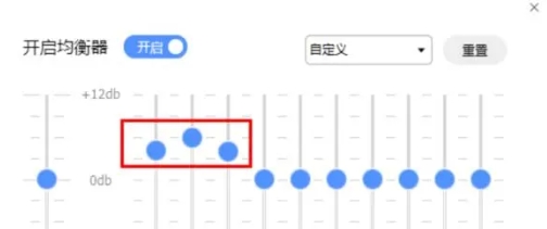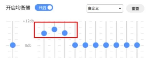 2,喜欢戴耳机的小伙伴可以将均衡器的第一轨和第三轨调到数值四,并将第二轨调到数值6左右。