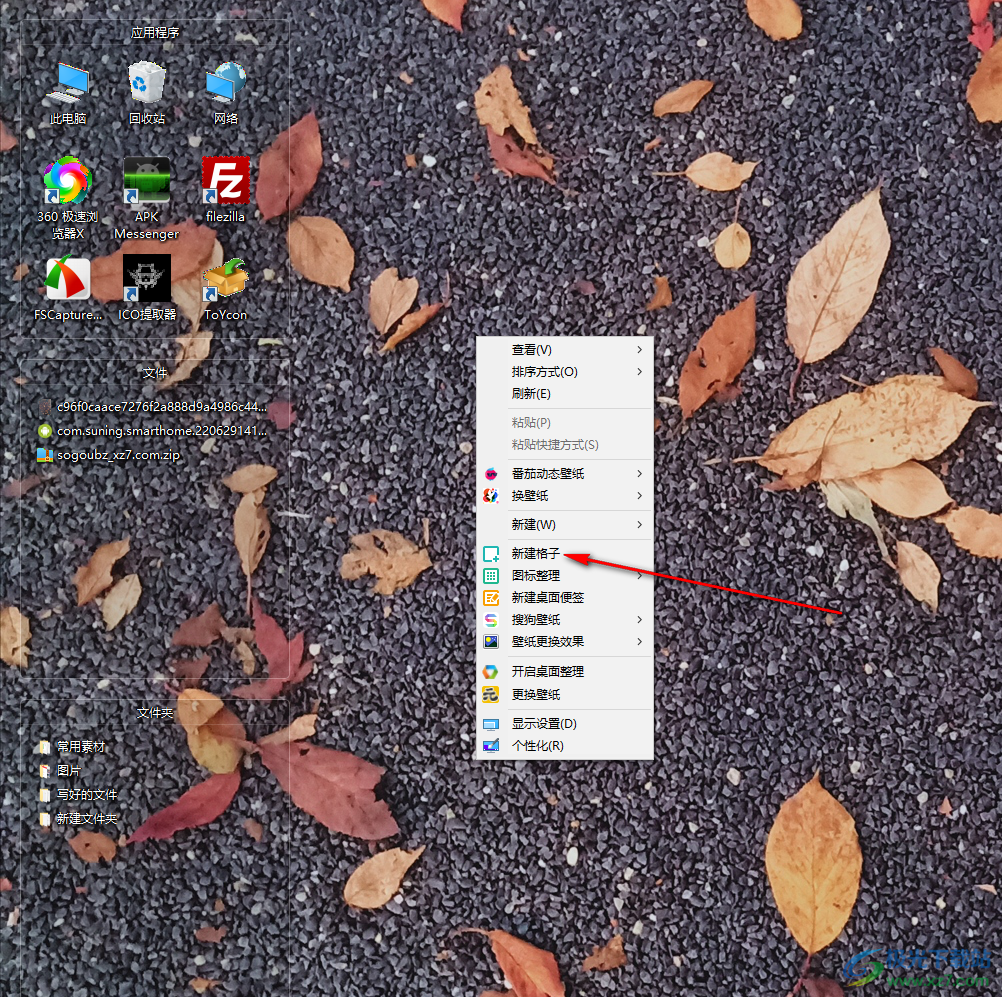 2.然后你可以右键点击一下电脑桌面任意一处,在打开的窗口中,选择【新建格子】。