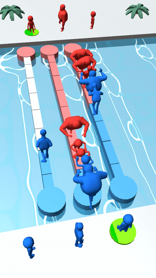 红蓝推手让你在游戏里好好的热血一把,手游的队伍氛围红蓝两队,你想要帮助自己的阵营赢得最终的胜利,来到对面的小桥上将对方的小人推下去,以绝对的力量获得胜利。