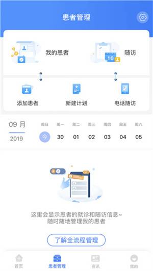 3、点击患者管理,可以查看自己名下患者的数据