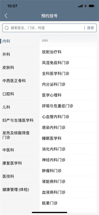 4、然后在打开的新页面中选择你要的科室,也可根据医生、门诊、科室进行搜索