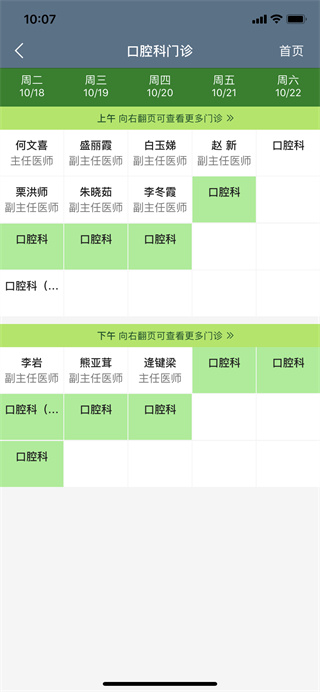 5、选择好之后系统就会显示接下来七天内的坐诊医师情况了