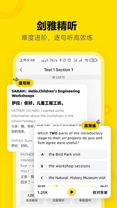 模拟雅思口语考试流程,选取雅思高频口语真题。紧贴考情让你得到定向学习。