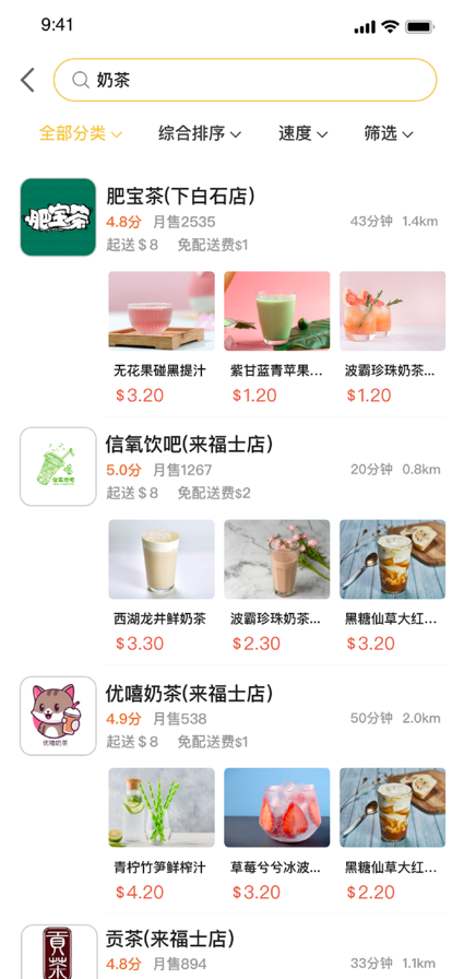 2、各项食物都支持同城配送服务的,非常的方便实用,节约自己的时间。