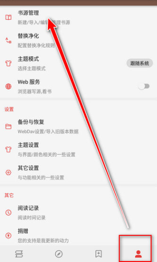 1、进入「我的」界面,点击「书源管理」