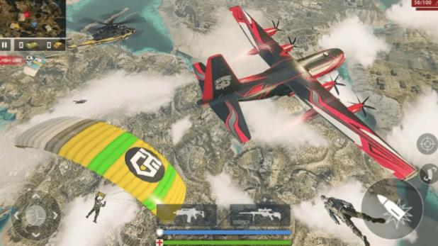 2、跳伞进入赛场,玩家可以自由控制和选择他们想要的,在接地点,您可以在这里收集大量武器,让您在战场上使用不同的武器进行战斗;
