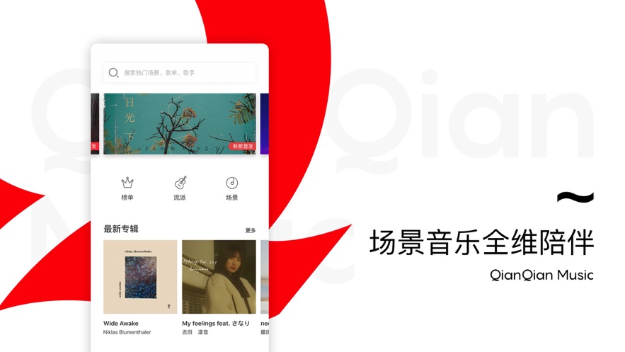 4、定时更新不同专题,总有一款专题符合你的主口味。千千音乐App随时随地陪伴你,在你玩游戏时,运动时,和朋友一起逛街时,千千音乐App一直陪在你身边。