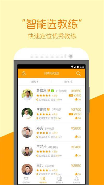 用户可根据距离、价格和教练素质在线挑选合适的教练,确保学车质量。