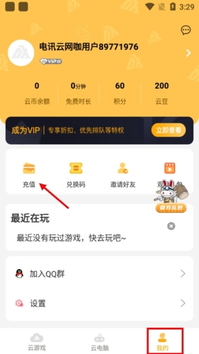 在电讯云网咖中享受超便捷云游戏,有些云游戏是需要收费的,用户每日完成任务也可以获得一定的免费时长。