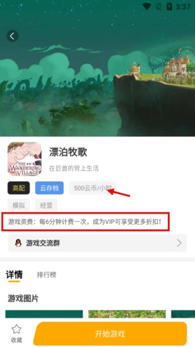 3、在每一个云游戏的启动界面都可以看到游戏的花费以及扣费情况,有些游戏是可以免费启动的。