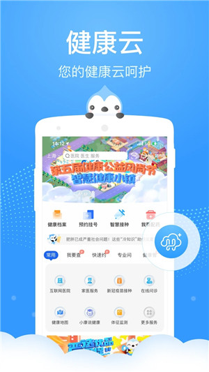 健康云是由万达信息股份有限公司设计打造的一款线上健康医疗服务软件,其以“居民电子健康档案数据”为基础,集“预约就医服务、专家在线咨询、名医健康教育”等多样服务于一体,旨在帮助用户解决生活中所遇到的各类疾病健康问题,让其挂号、就医更为的方便快捷!