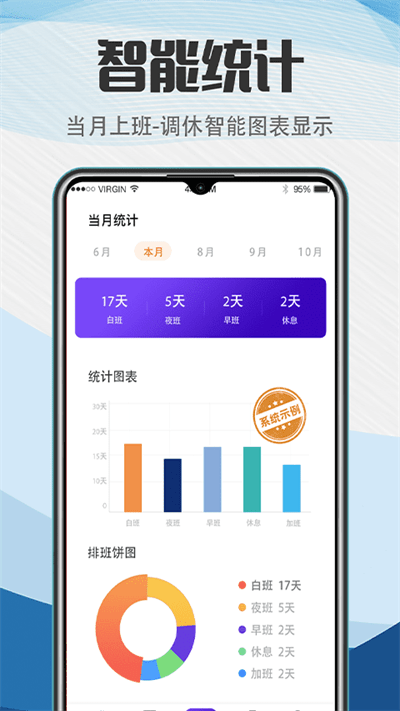 ·还能对每个月的排班倒班情况进行统计形成图表,方便统计