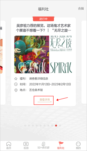1、首先进到app内,在“福利社”版块内有很多的福利活动,选择你想要参加的活动,并点击“查看详情”,你还可以点击右上角的“合辑”查看更多活动。