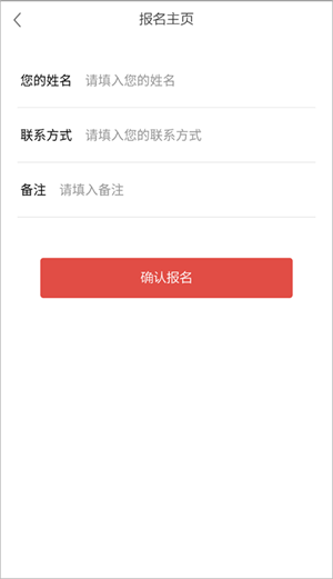 3、最后一步填写你的姓名、联系方式、以及备注后点击确认报名即可。