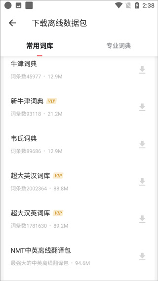 有道词典还提供了词典和短语本地离线包的下载功能,用户可以在没有网络连接的情况下使用词典进行翻译和学习。