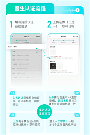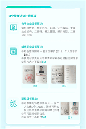 2、医生认证还需要执业资质认证,注意事项如下;