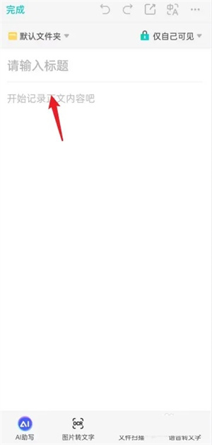 在新建文档页面,输入标题和内容,点击【完成】即可。