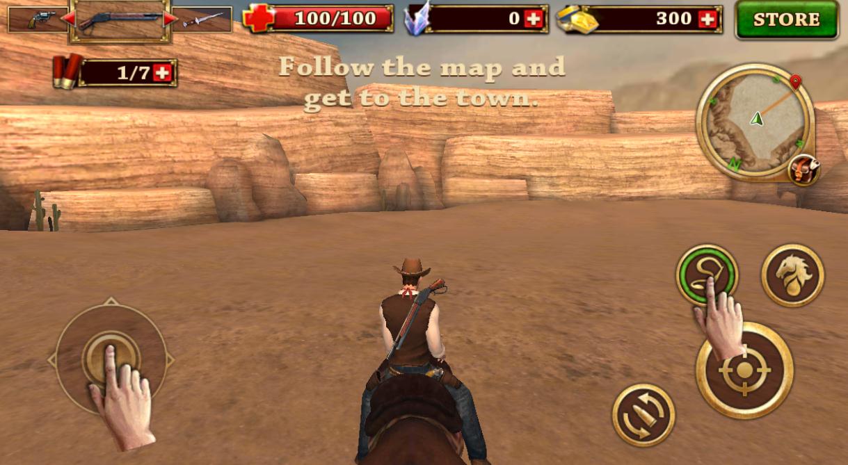 枪火西部发现角色,找到工作,杀死罪犯并获得奖品,更好的闯关。