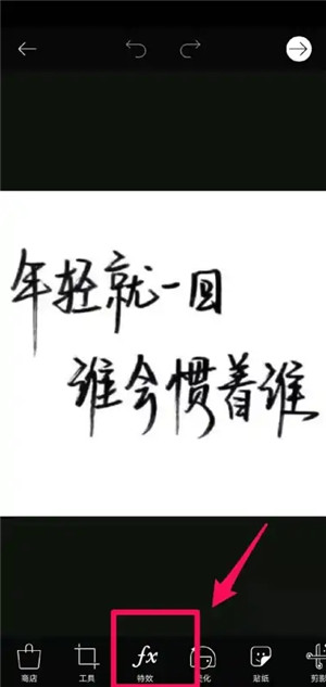 2、这个时候你要在手机中选择一张你自己的图片,接着开始选择特效。点击fx就是了