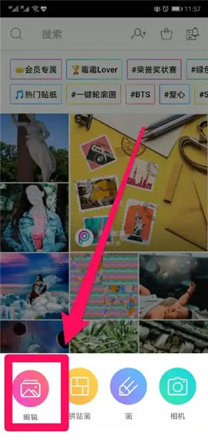 1、首先,打开picsart,进入首页之后点击下方的“+”按钮,点击左下角的编辑