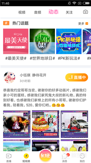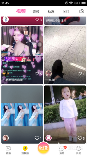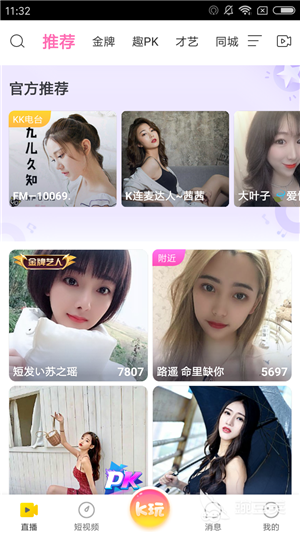 4、KK直播在下方开通了短视频功能,短视频的内容都会根据大家的喜好来推荐,所以用户们在使用的过程中点击自己感兴趣的短视频就可以进行观看了。