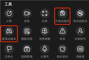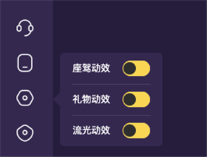 【座驾动画】开关:开关支持电脑及手机端皆可见,开关默认开启。开关关闭后,则无法显示自己或他人进房座驾特效。