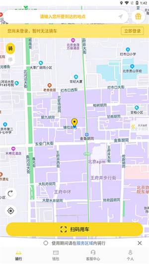 3、了解完上述内容就可以点击【扫码用车】按钮租借共享电单车了。