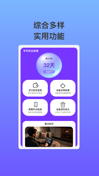 2、可以快速进行手机安全监测,保障大家的使用安全;