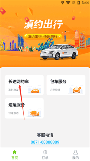 3、接下来我们回到首页,我教大家如何打长途网约车,点击页面的长途网约车