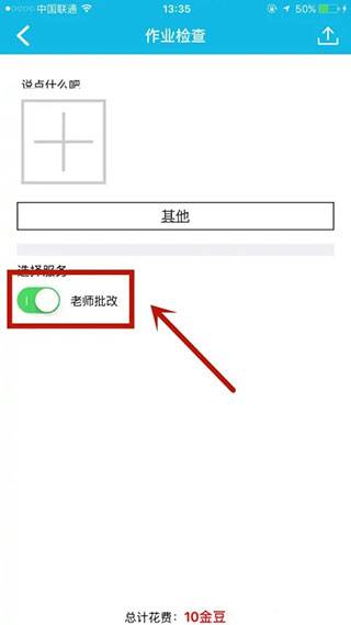5、接着将老师批改后的按钮打开,即可成功操作。