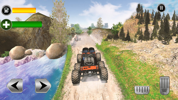 2、游戏中左下角控制左右方向,右下角为油门刹车,.驾驶你的山地越野赛车加速;